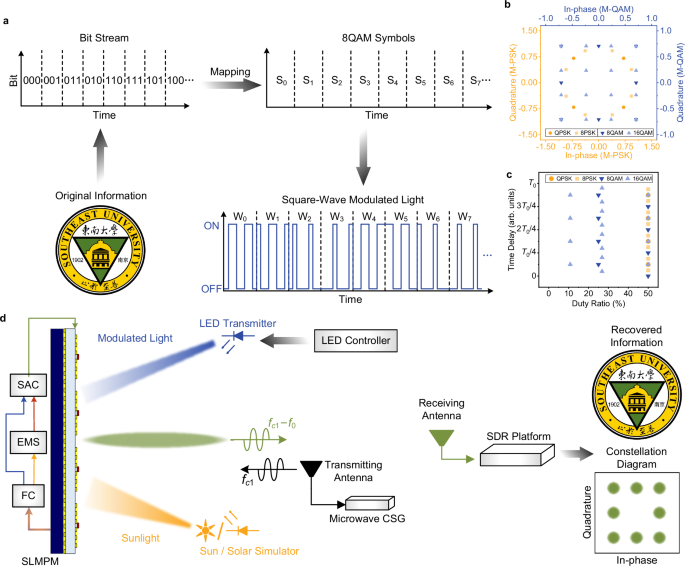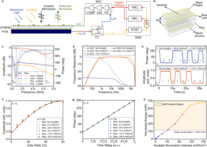 圖1:太陽供能光調制微波可編程超表面(SLMPM)概念圖
